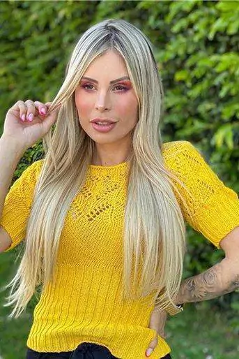 Blusa confeccionada em tricot. Modelo de gola alta e mangas curtas, possui detalhes em relevo vazado. Super confortável e charmosa. Ideal para os dias mais frios.